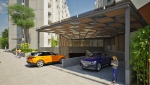60+ modern amenities including clubhouse, gym, pool, kids’ play zones, EV charging bays, and landscaped open spaces.